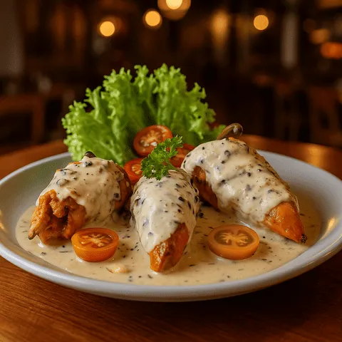 Ajíes peruanos rellenos de lomo saltado.
