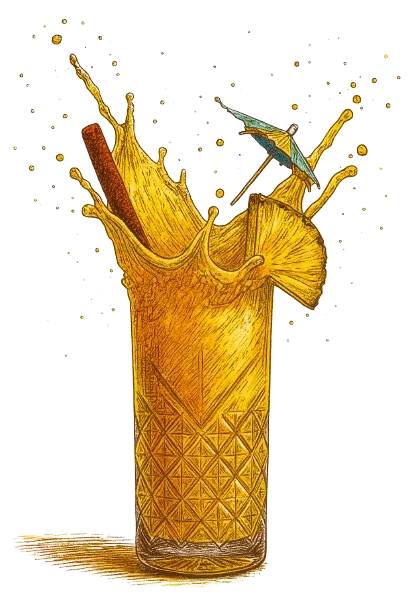 Syrup de naranja, soda sabor lima-limón, dulce de tamarindo y decorado con rodaja de piña.