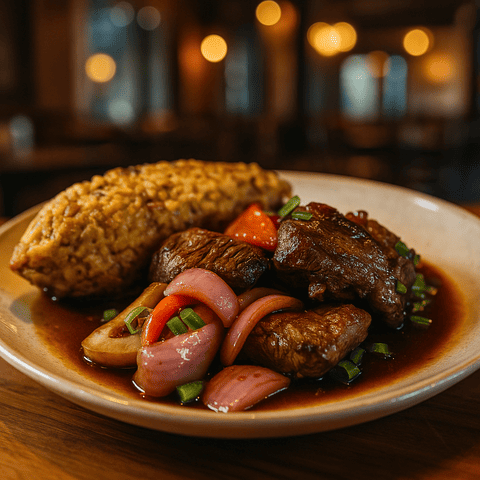 Un clásico tostado a la sartén acompañado con nuestro clásico lomo saltado.